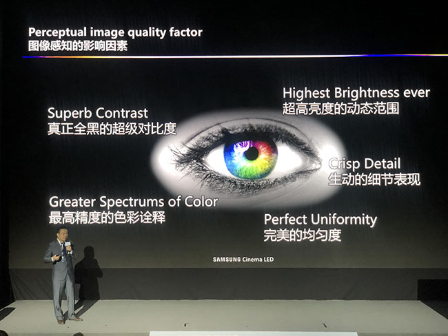 LED显示屏代替投影技术,从表面上看,难度系数并不是很大,毕竟,三星推出的这款LED显示屏支持4K分辨率,已经超越传统投影技术,它的黑色更黑、白色更白,在成像表现上能够为体验者带来非凡的视觉享受,是目前市面上唯一一款画质符合DCI标准的LED显示屏。于观众来讲,这是一个非常好的消息,但在业界为何能引起轰动性的效果?