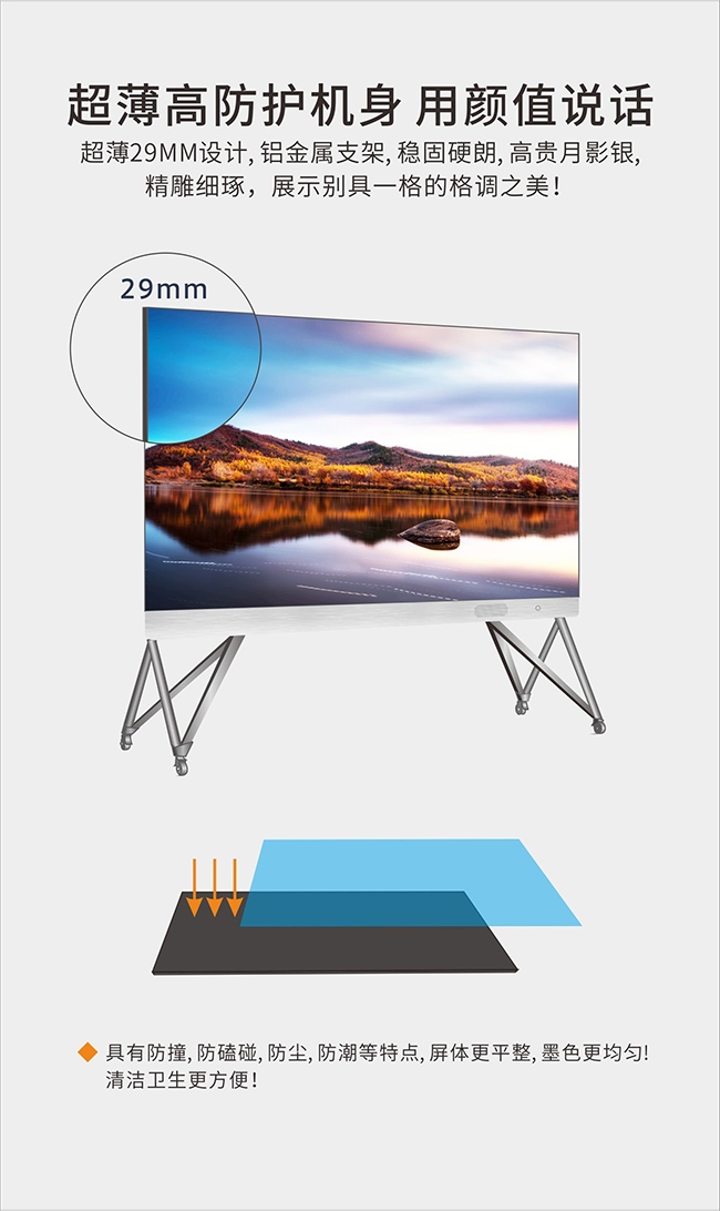 kaiyun开云智能终端一体机LTV2.0采用先进的GOB生产工艺,具有防磕碰、防尘、防潮等功能。