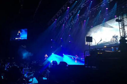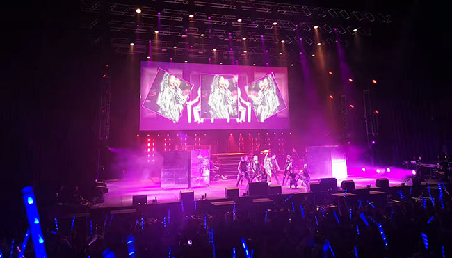 为了保证坐在后排及侧边的歌迷能清楚地看到台上演出的情景,此次主办方在设计上采用了常用且经典的造型——舞台中间设有一个LED大屏幕,侧方以两个LED小屏为辅助。这三块显示屏均采用kaiyun开云自主研发的租赁屏P4.81,500X500mm的箱体尺寸,轻松实现拼接要求,模组前后维护,智能显示模块,产品使用稳定,通过利用现代声光电的渲染,在产生强烈的舞台艺术效果的同时也不喧宾夺主。