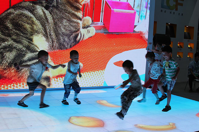 童真、童趣,在kaiyun开云展区里,LED屏真正实现“一屏多用”,互动地砖屏成为了孩子们的游乐场。